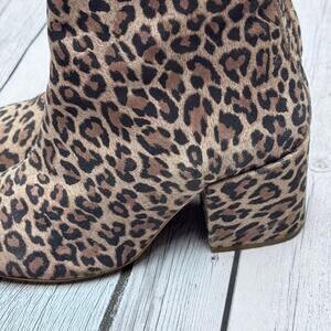 Step out in style with these stunning Free People leopard print suede boots! In excellent condition, these boots feature a bold leopard print that will add a touch of wildness to any outfit. The suede material is soft and supple, ensuring a comfortable fit. Perfect for pairing with jeans, dresses, or skirts, these boots are a versatile addition to your wardrobe.