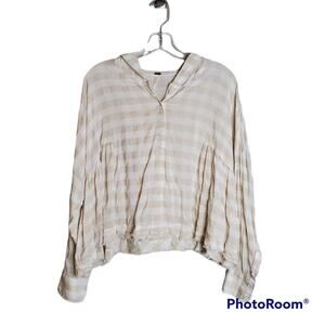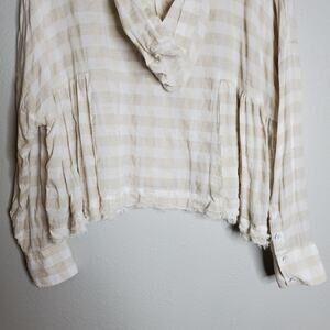 Free People Let It All Go Gingham Check Hooded Swing Top XS Oversized Boho Fall