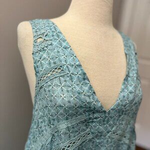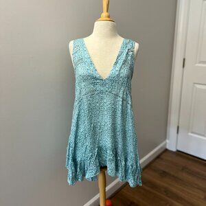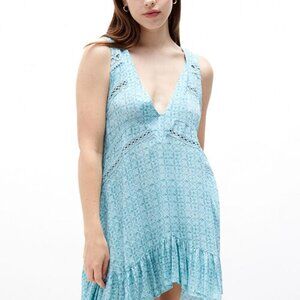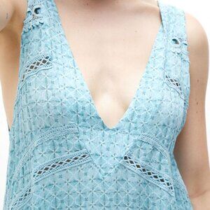 Free People brings their forever flattering Let It Happen Mini Dress to your everyday look. This super cute mini dress has crochet details with a femme ruffled hem, a plunging v-neckline, and a low back. Flouncy, semi-sheer and fun!