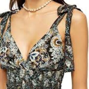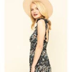 Vintage-inspired floral prints create a dynamic effect on a flowy maxi dress topped with a flattering V-neck. True to size. S=4-6 Color: Black Combo