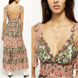 Free People Let's Smock About It Maxi Slip Dress Paisley Print XS