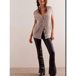 Free People Level Up Faux Vegan Leather Slit Pants Black MSRP $98 US 24 NWOT