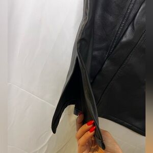 Sleek black pants with a leather-like finish. Ideal for a modern style.