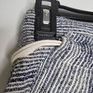 Cut from lightweight cotton in streaky stripes, these slim-but not snug-crops keep up with your weekend day from dawn till way past dusk. Stripes look chic on these high rise, cropped Light at Sunrise pants. Zip fly with hook-and-bar closure and drawstring waist Side slant pockets; back welt pockets 100% cotton Machine wash, line dry Imported [A]