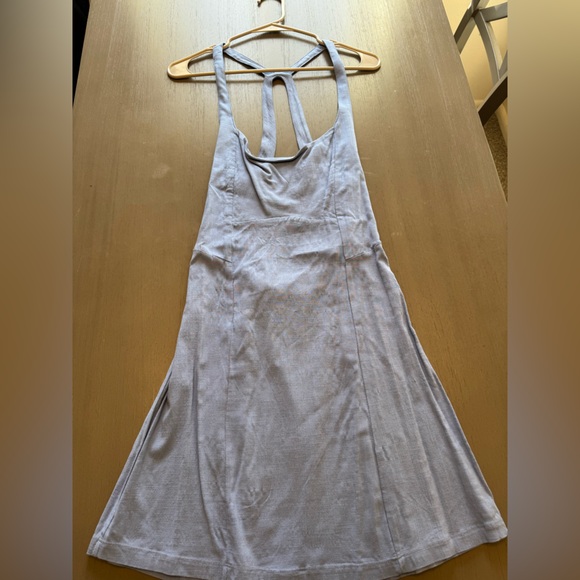 Stylish light blue fitted open back dress . Sleeveless with a racerback design.