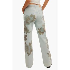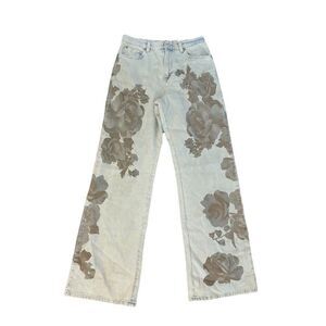 Stylish straight leg jeans. Light blue with floral pattern. Perfect for casual wear.