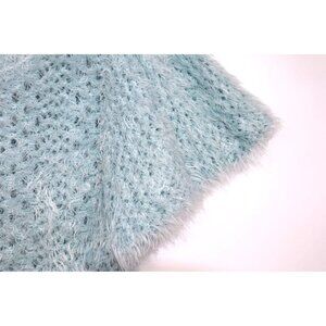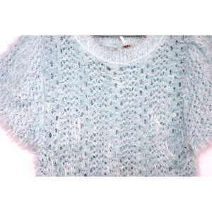 Free People Light Blue Fluffy Knit Short Batwing Sleeve Sweater Womens XL Party