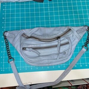 Free People Light Blue Goa Leather Archer Sling Waist Bag Fanny Pack 7x15x3