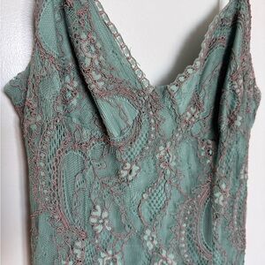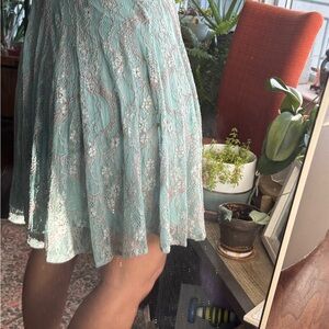 Free People Light Blue Lace A-Line Knee Length V-Neck Dress Size 4