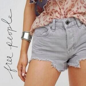 Free People Light Gray Distressed Denim Micro Shorts with Button Fly, Size 27. Great condition no flaws!