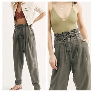 Free People Light Gray Margate Paper Bag Pleated Drawstring Pants Size SP