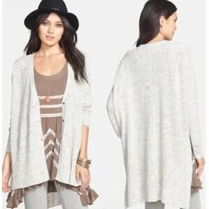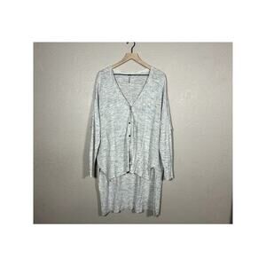 Free People Light Heathered Gray High Low Oversized Cardigan Button Front Large