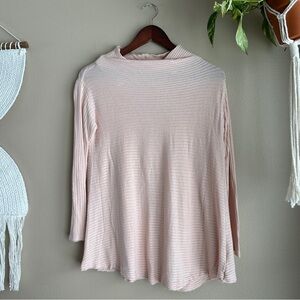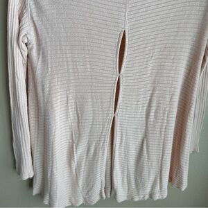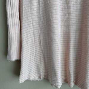 - 95% Rayon, 5% Spandex - Lightweight soft feel with stretch - Mock cowl neck - Keyhole cut-out split back - Drop shoulder seams - Relaxed, flowy, tunic body with long fitted sleeves - Raw bottom hem
