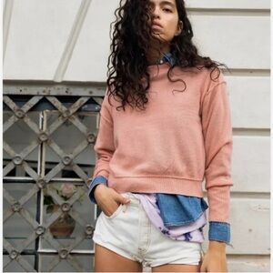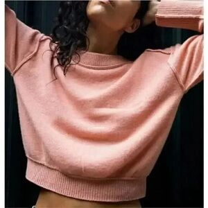 Cozy light pink cashmere sweater by Free People. Ideal for layering.