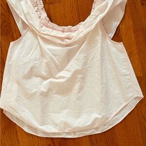 Free People top in light pink. Features ruffle details and sleeveless design. Ideal for casual wear.