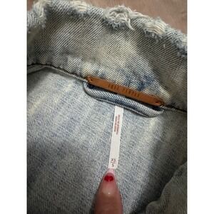 Free People Light Wash Distressed Denim Trucker Jacket XS S Oversized Cotton j1