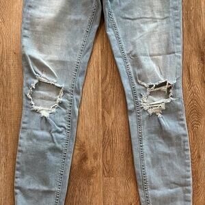 Free People Light Wash Distressed High Rise Skinny Jeans Size 28