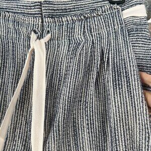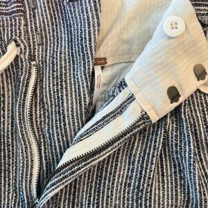 Free People Light At Sunrise pants, Free People striped pants, navy cream stripe, drawstring waist pants, cropped pants, ankle length, tapered leg, relaxed fit, casual pants, 100% cotton, lightweight woven, resort wear, coastal style, beach pants, spring pants, summer pants, pockets, zip fly, size 4, womens pants, boho style, Free People trousers