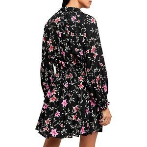 Free People Lighten Up Mini Small Floral Black Pink Shirt Dress Flounce Boho