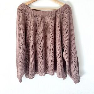 Free People Lights Will Shine On Dusty Pink Crochet Open Knit Wool & Alpaca Blend Sweater