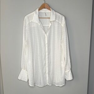 Free People Lightweight Oversized Textured Button-Up Shirt in White Size Large
