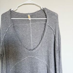 Free People Lightweight Waffle Shirt Grey Size Small