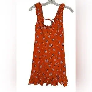 Free People Like A Lady Mini Dress Orange Floral Ruffle Boho Open Back XS