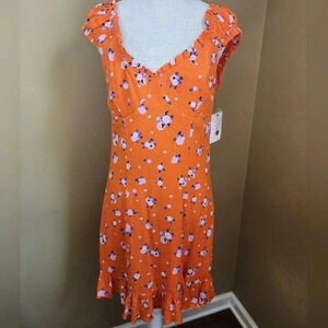 Free People Mini Dress orange with orange citrus print. New with tags size Small