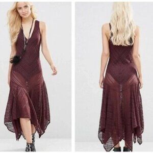 Free People Lila Lace Asymmetric Slip Dress Plum Purple - Size Small