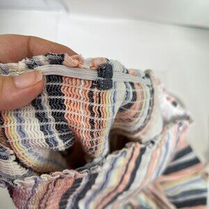 Free People Dress Womens Small Strapless Pink Blue Striped Button Maxi Pockets Cotton