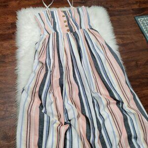 Free People Lilah Multi Striped Pleated Button Front Midi Dress Women's Small