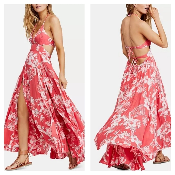 Free People Lille Printed Tie-Back Maxi Dress Size Medium