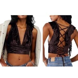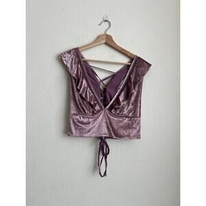 Free People Lillian Velvet Lace Up Ruffle Crop Top Blouse Mauve Pink Size Large