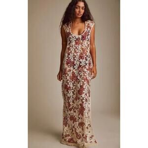 Free People Lilly Lace Maxi Dress Ivory/Cream Floral Crochet | Size XL NWT