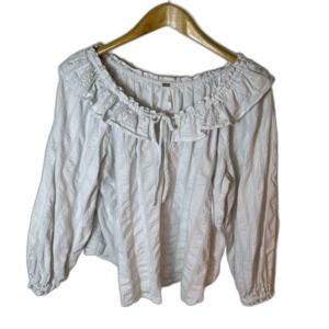 Free People Lily of the Valley White Ruffled 3/4 Sleeve Peasant-Style Top Size S