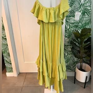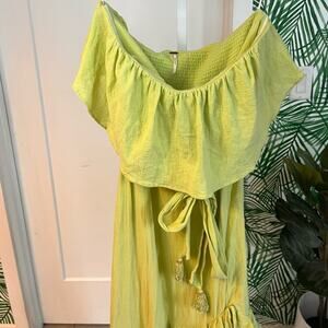 Free People Lime Green Flouncy Strapless Tiered Midi Dress Sz Medium