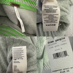 Free People Lime Grey Combo Chunky Street Fair Tunic Sweater Size Small