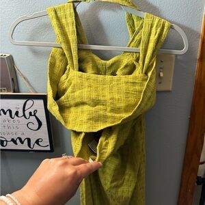 Free People Lime Green Sleeveless Jumpsuit NEW Size Large Linen Cotton
