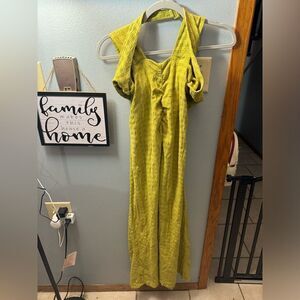Free People Lime Green Sleeveless Jumpsuit NEW Size Large