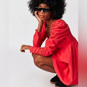 Features: Sweetheart neckline, ruch-adorned puff sleeves, smocking at back, effortless pull-on style, pleating at bottom
