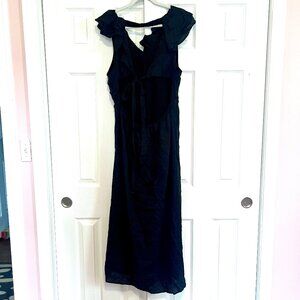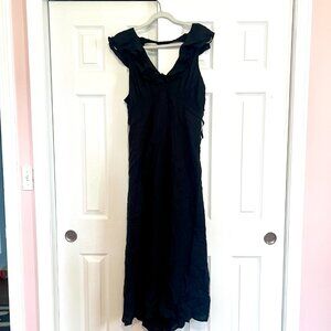 Free People Linen Black Ruffle Shoulder Maxi Dress Size L