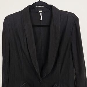 Free People Linen Blend Blazer Black XSmall XS Single Button Casual Lightweight