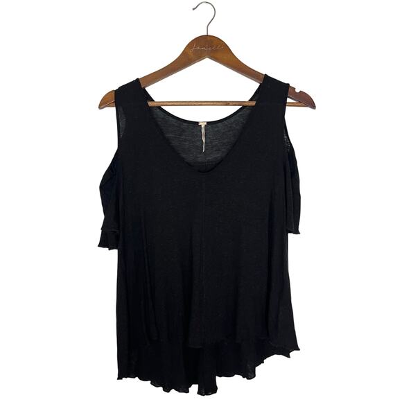 Free People Cold Shoulder Linen Blend Black Shirt Top Flowy Beach Coastal Size S