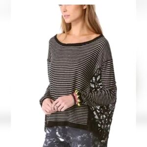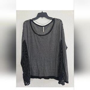 Free People Linen Blend Crochet Love Me Do Blouse Top Sz M Stripe Oversize