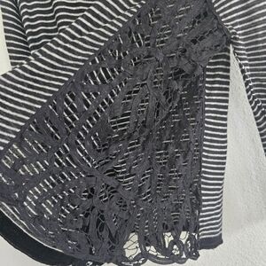 Free People Linen Blend Crochet Love Me Do Blouse Top Sz M Stripe Oversize