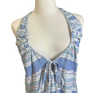 Free People Linen Blend Halter Mini Dress Blue Boho Floral Stripe Pattern Size M
