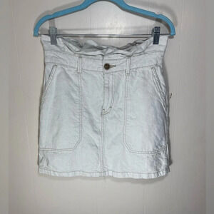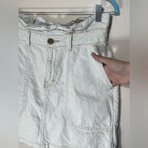 Free People Linen Blend Off White Cream Denim Paper Bag Mini Skirt Women’s Sz 6