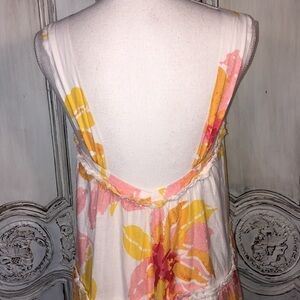 Free People Linen Blend Sherbet Color Florals on White Multi Tiered Dress S/XS