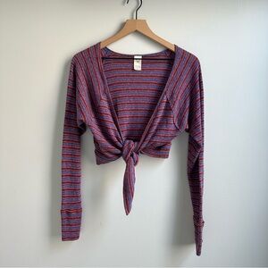 Free People Linen Blend Wrap Front Cropped Striped Cardigan Small