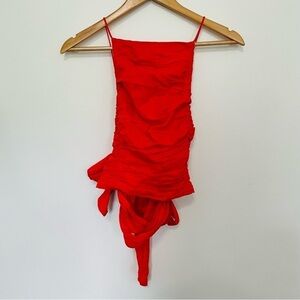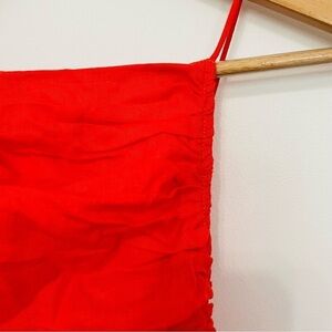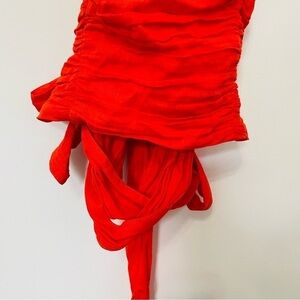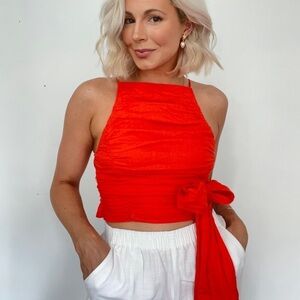 💫 Free People Linen Ruched High Neck Large Bow Tie Wrap Top